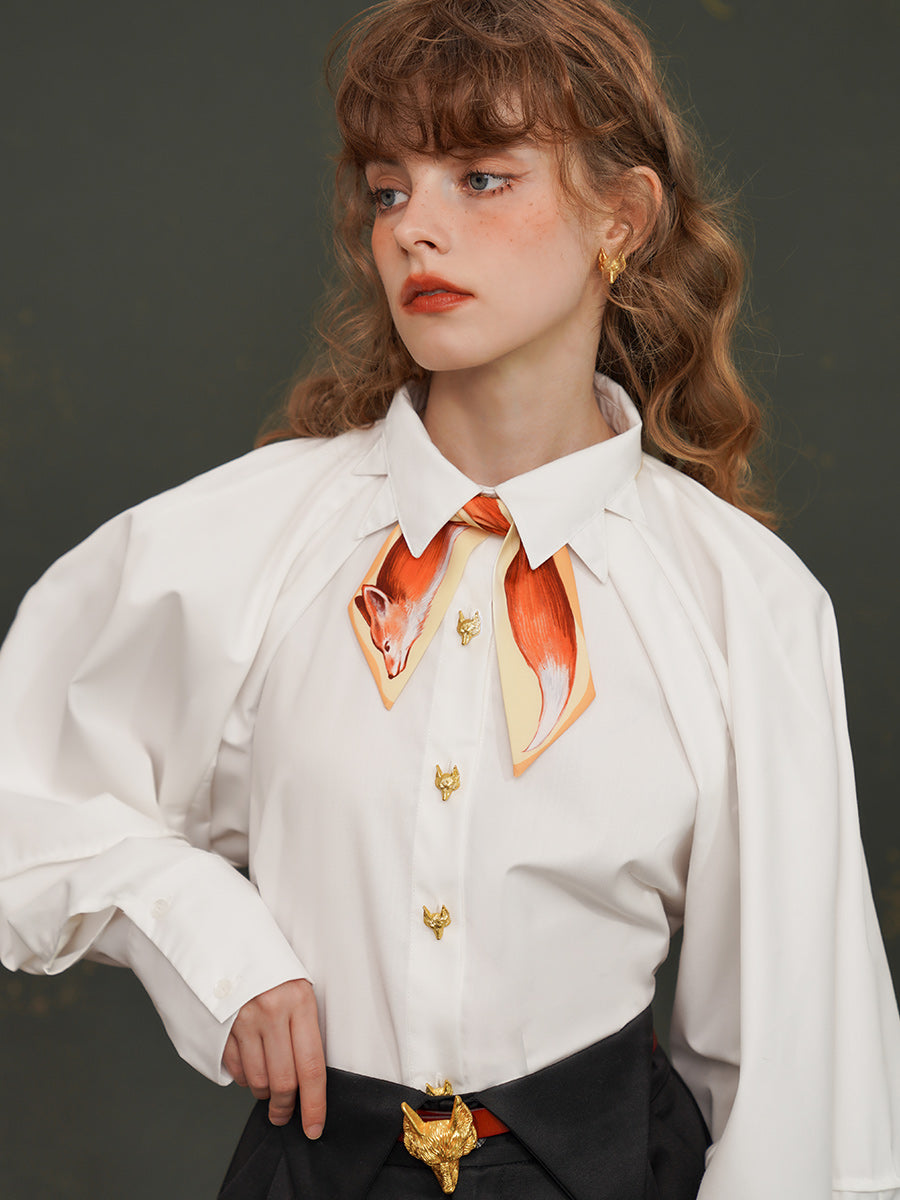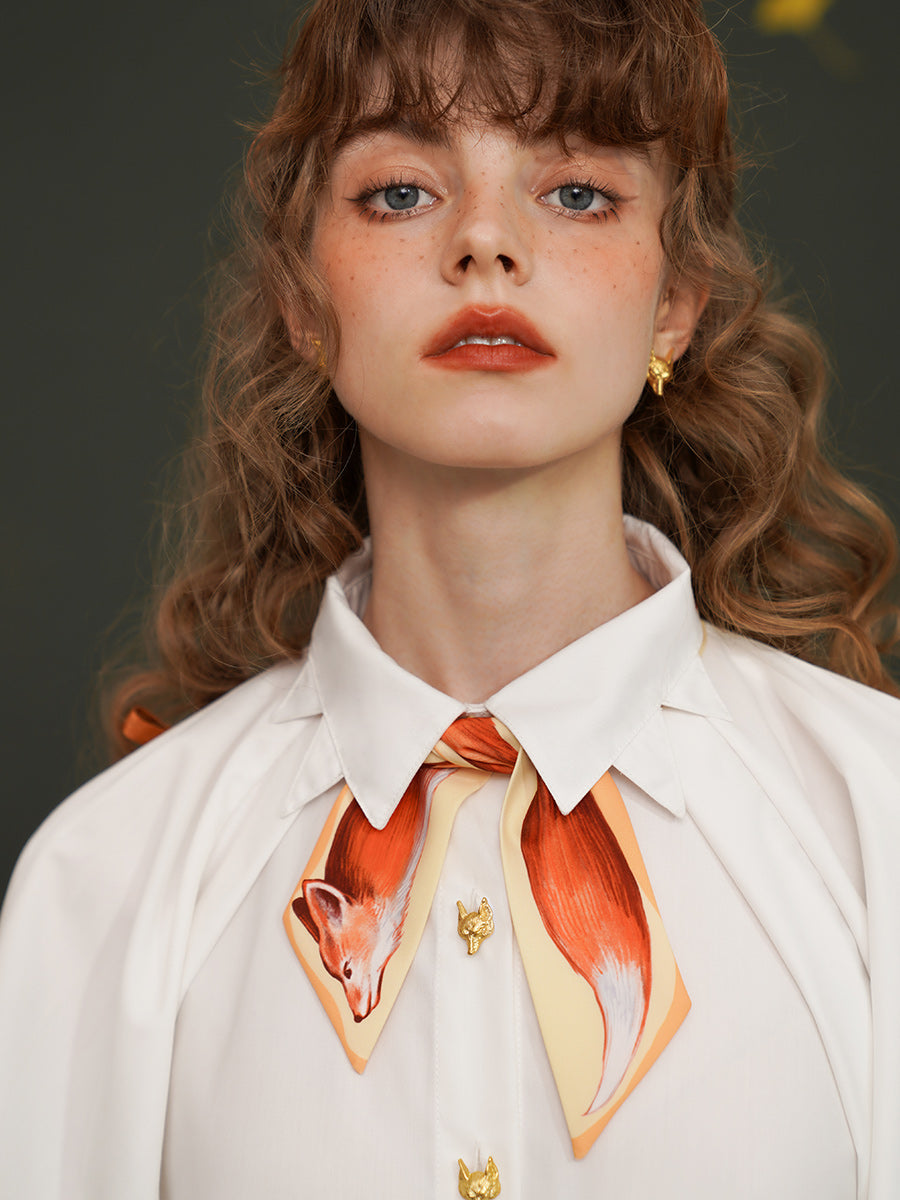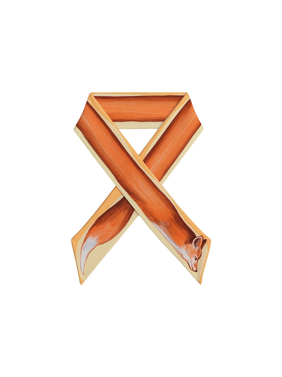Artistic Fox Hand-Painted Narrow Scarf - Vintage Skinny Silk-Feel Long Tie