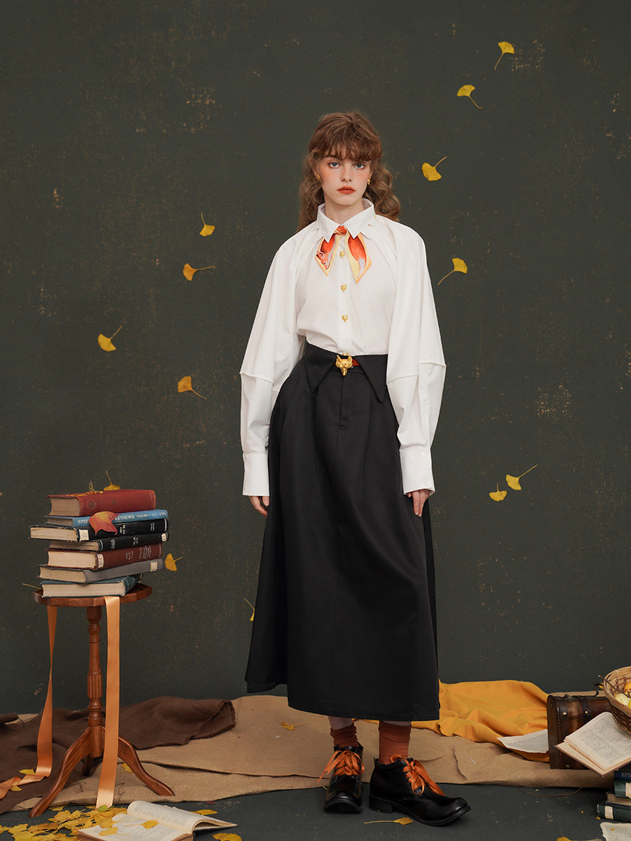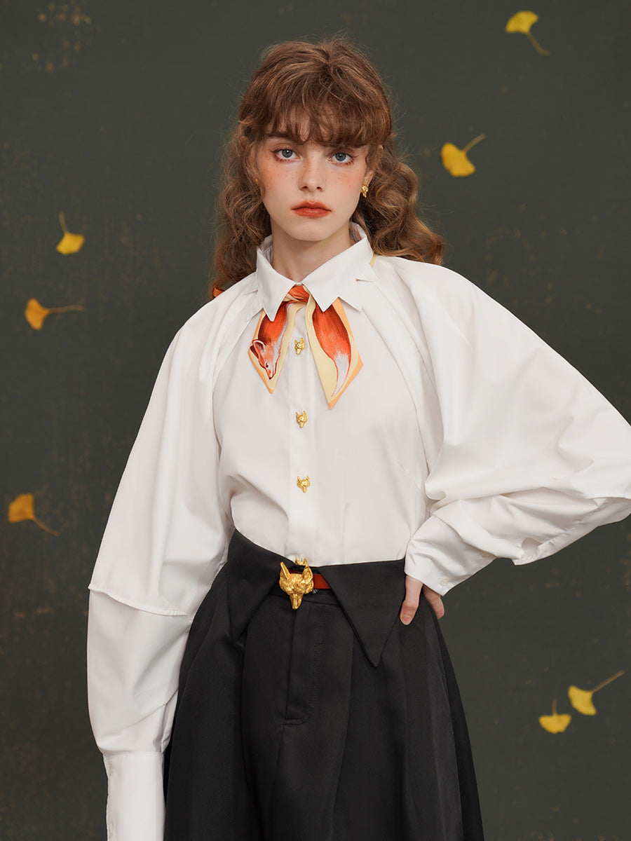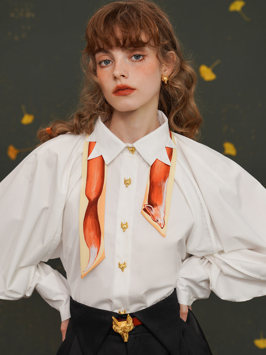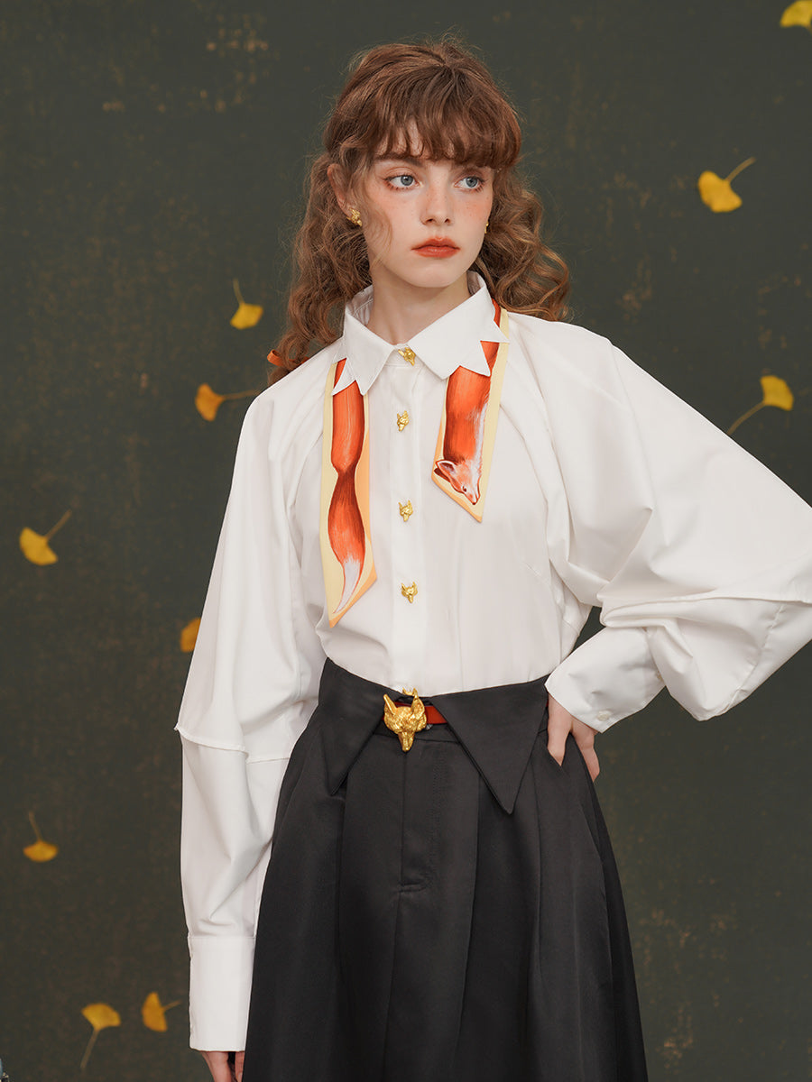 Artistic Fox Hand-Painted Narrow Scarf - Vintage Skinny Silk-Feel Long Tie