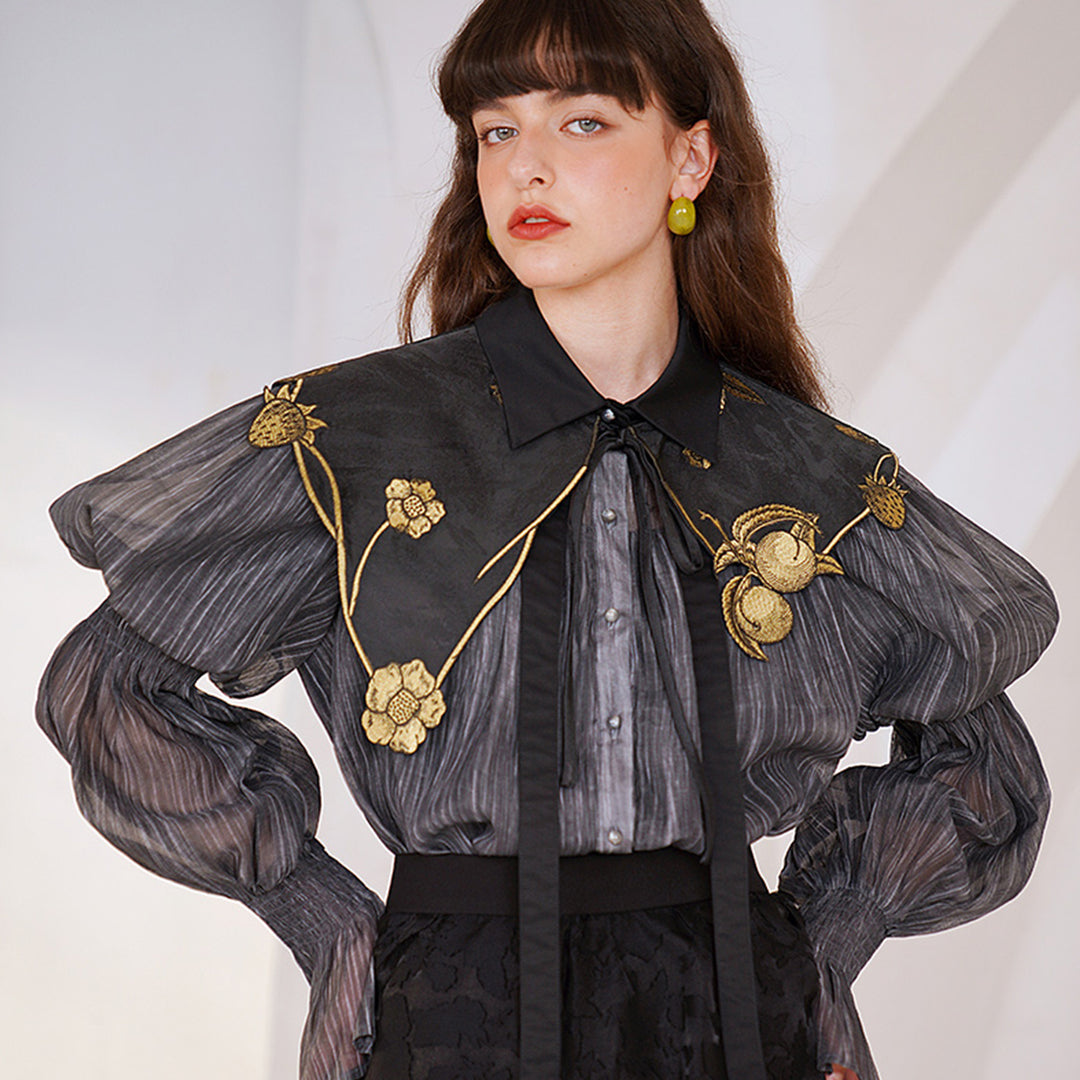 Original design Embroidered shirt French retro manor loose and detachable shawl top for autumn and winter women