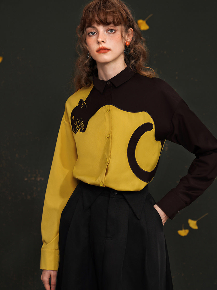 Original sleeved contrasting leopard shirt with artistic style retro spring top for women
