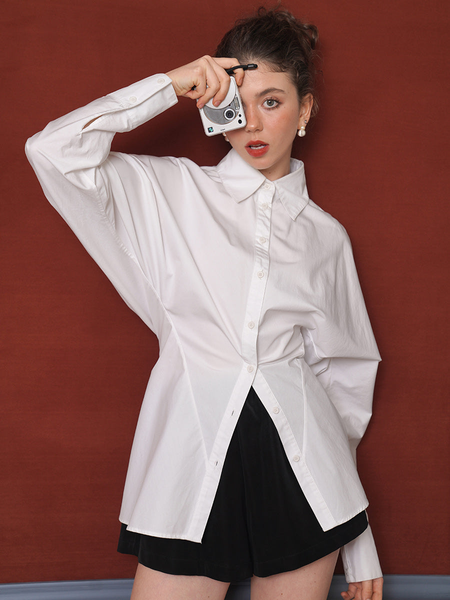 High end waist cinched shirt with stand cut design, fashionable commuting, niche sense, top designer, slimming women's clothing, winter