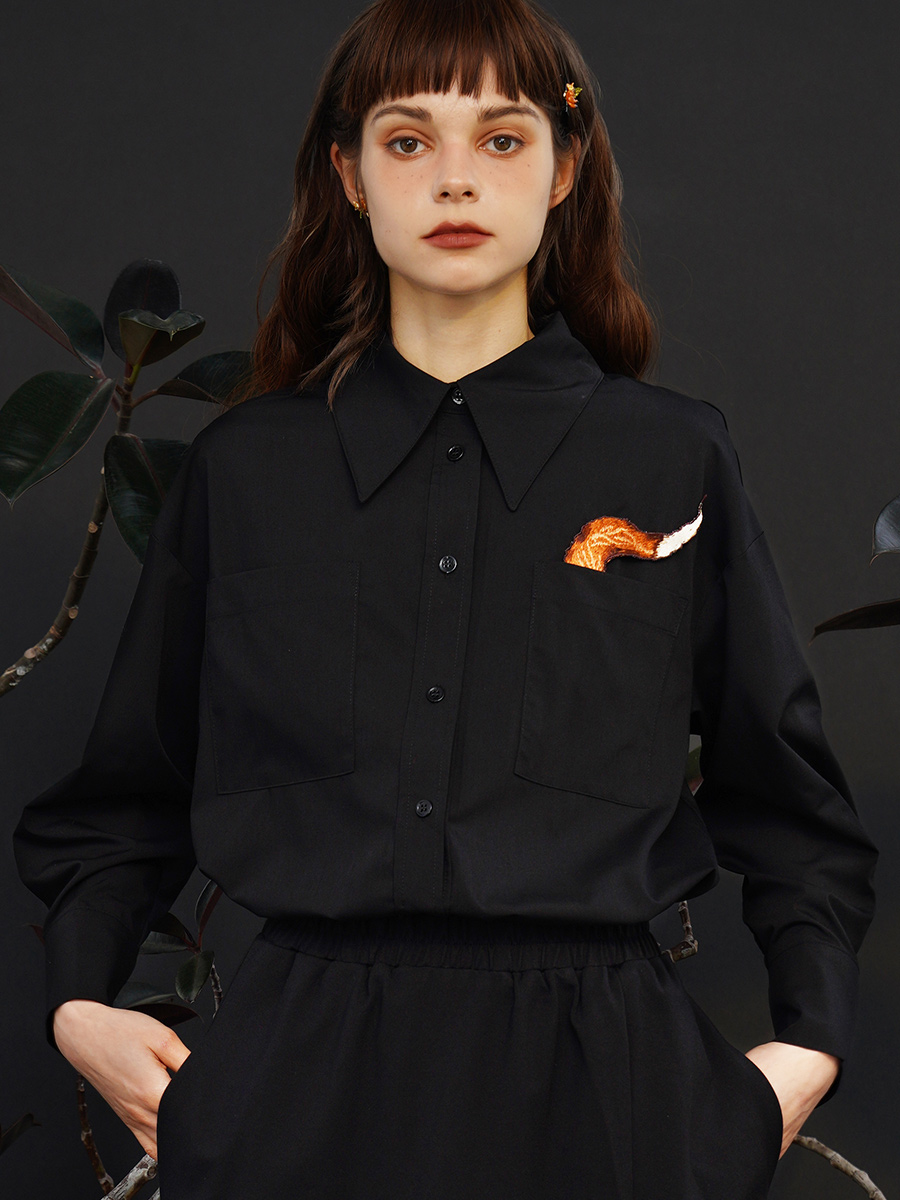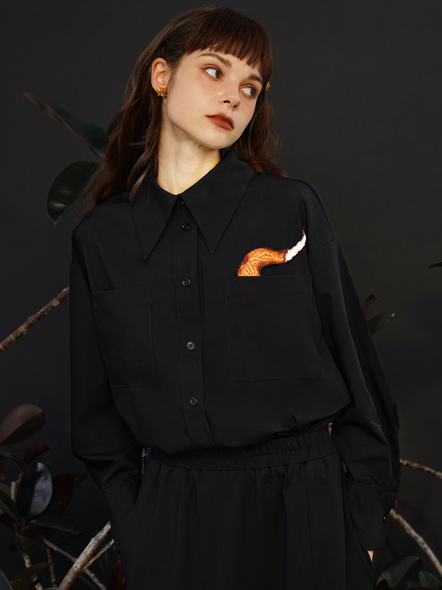 Original niche fun exquisite embroidered shirt gender free retro art cotton top couple