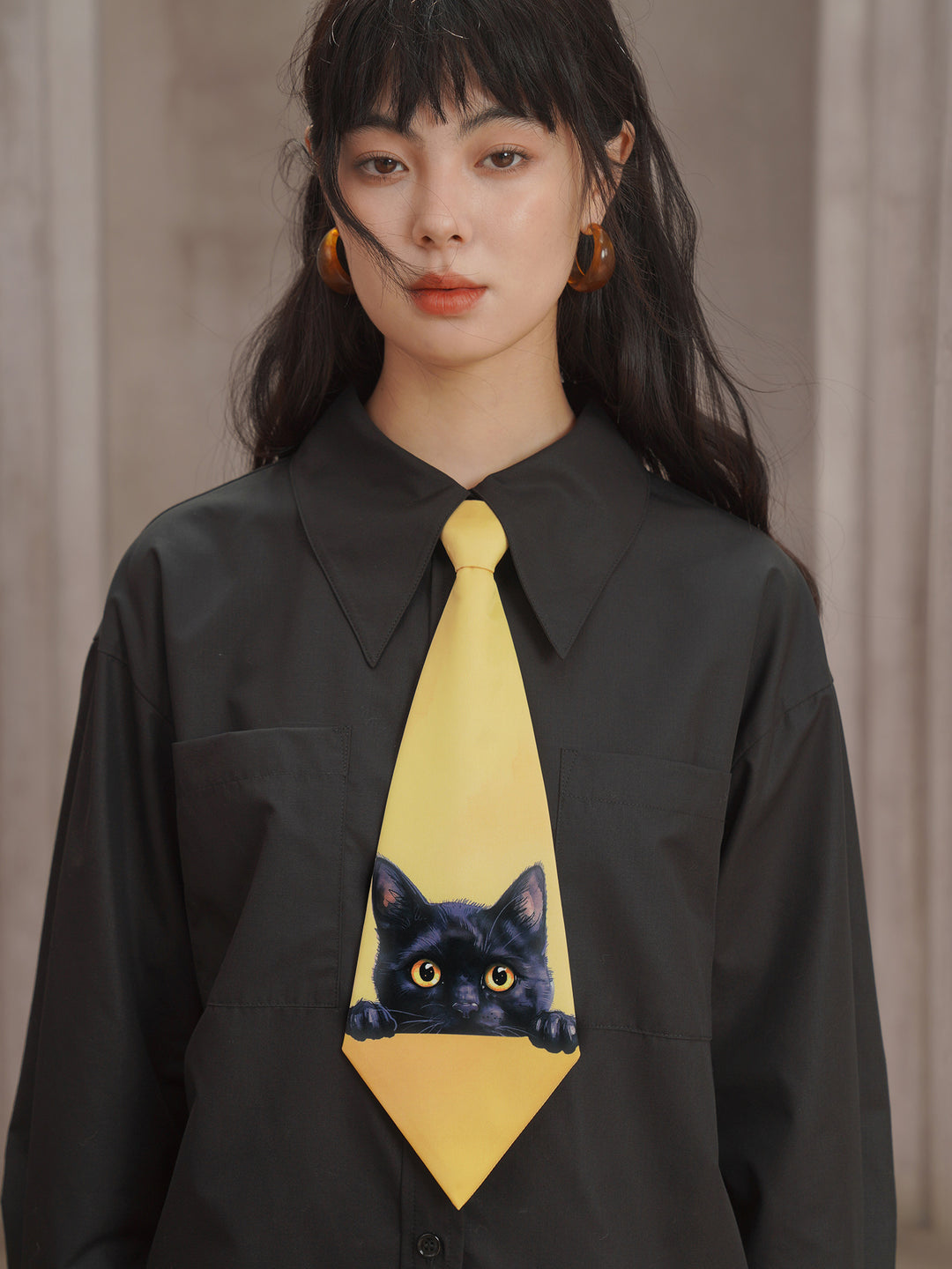 Original Black Cat Retro Printed Tie Yellow Short Arrow Shaped Accessory Women's New Product Tie Gift