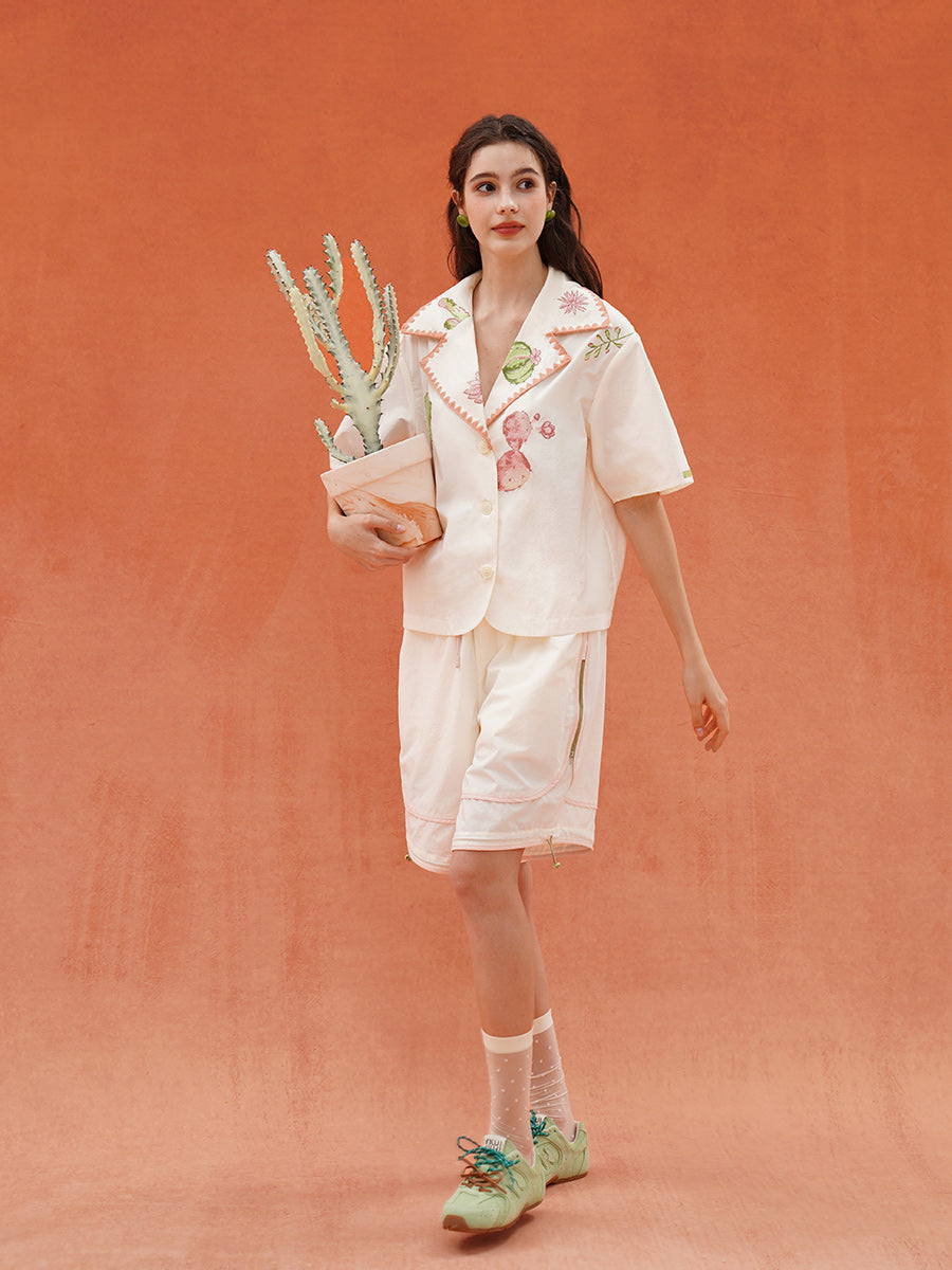 Original design sense of five quarter pants, summer niche rabbit embroidery, showing thin and small stature, versatile casual shorts for women