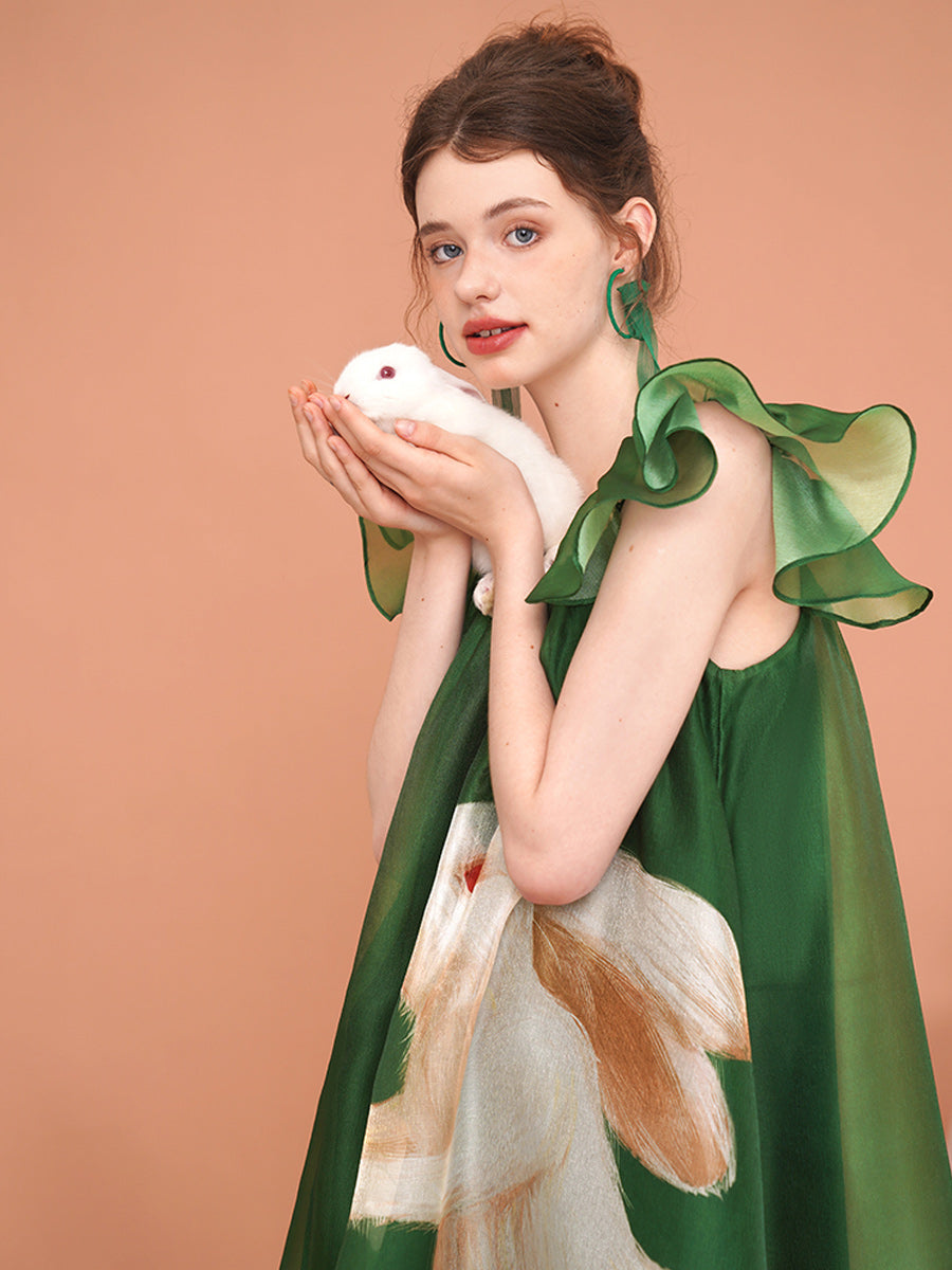 Whimsical Rabbit French Retro Dress - Romantic Flutter Sleeve Fairy Slimming Midi
