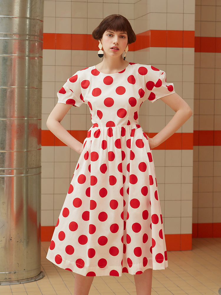 Retro Muse Polka Dot Dress - Original Summer Vacation Printed Maxi