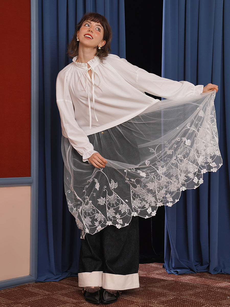 Moonlight White French Embroidered Midi - Retro Hollow Texture Romantic A-Line Skirt