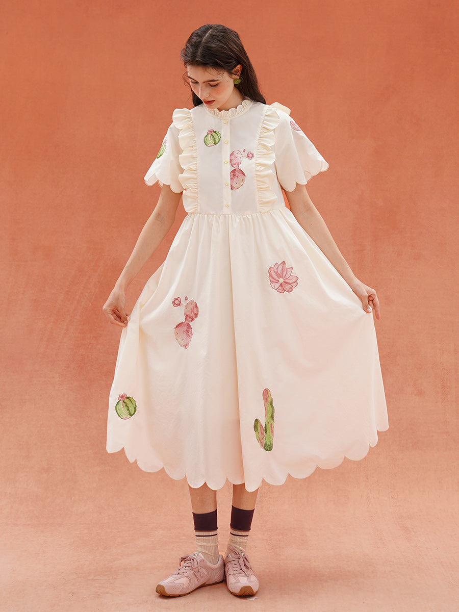 Petal Sportive" French Retro Dress - Embroidered Bow Detail Summer Midi