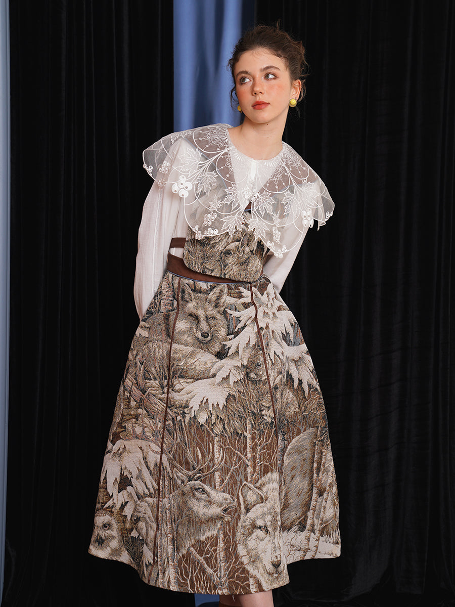 Original Jungle Animal Jacquard Half Skirt 2024 New Chinese Retro Umbrella Skirt Women's Set Winter Women's Skirt