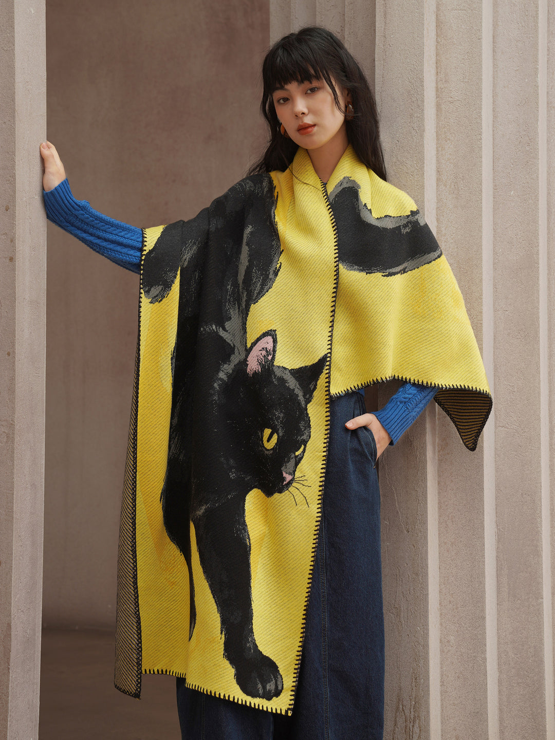 Camoooni Original autumn and winter soft black cat shawl knitted animal scarf gift thickened wool blend skin friendly
