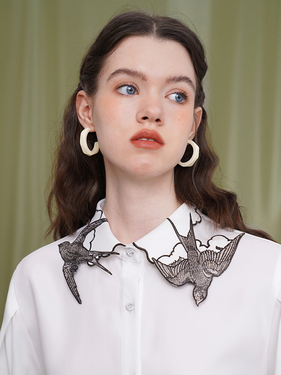 Original Embroidered Collar White Shirt Designer Style Small and Beautiful Versatile Top Women's Long Sleeve